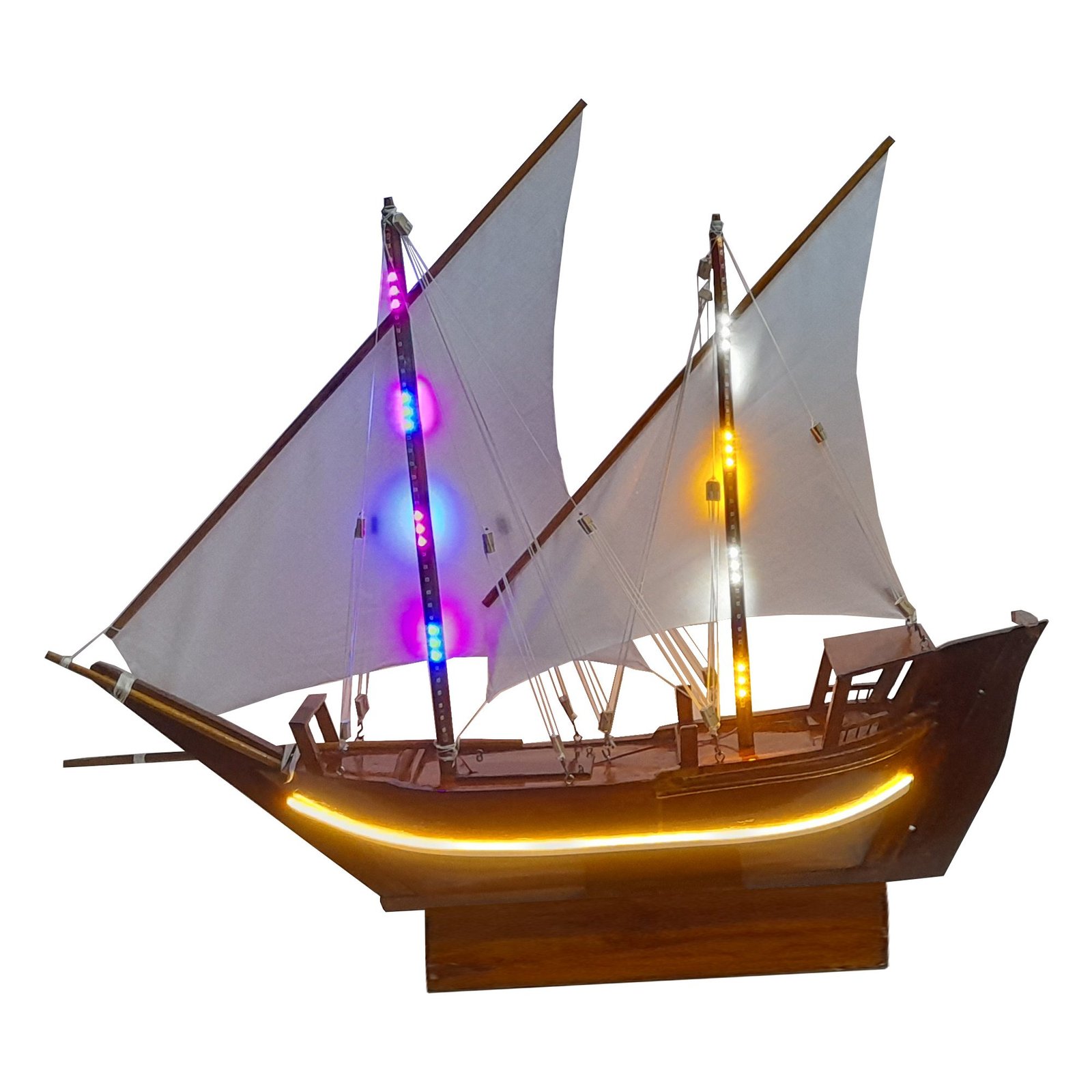 Handcrafted Wooden Uru Model Boat with LED Lights