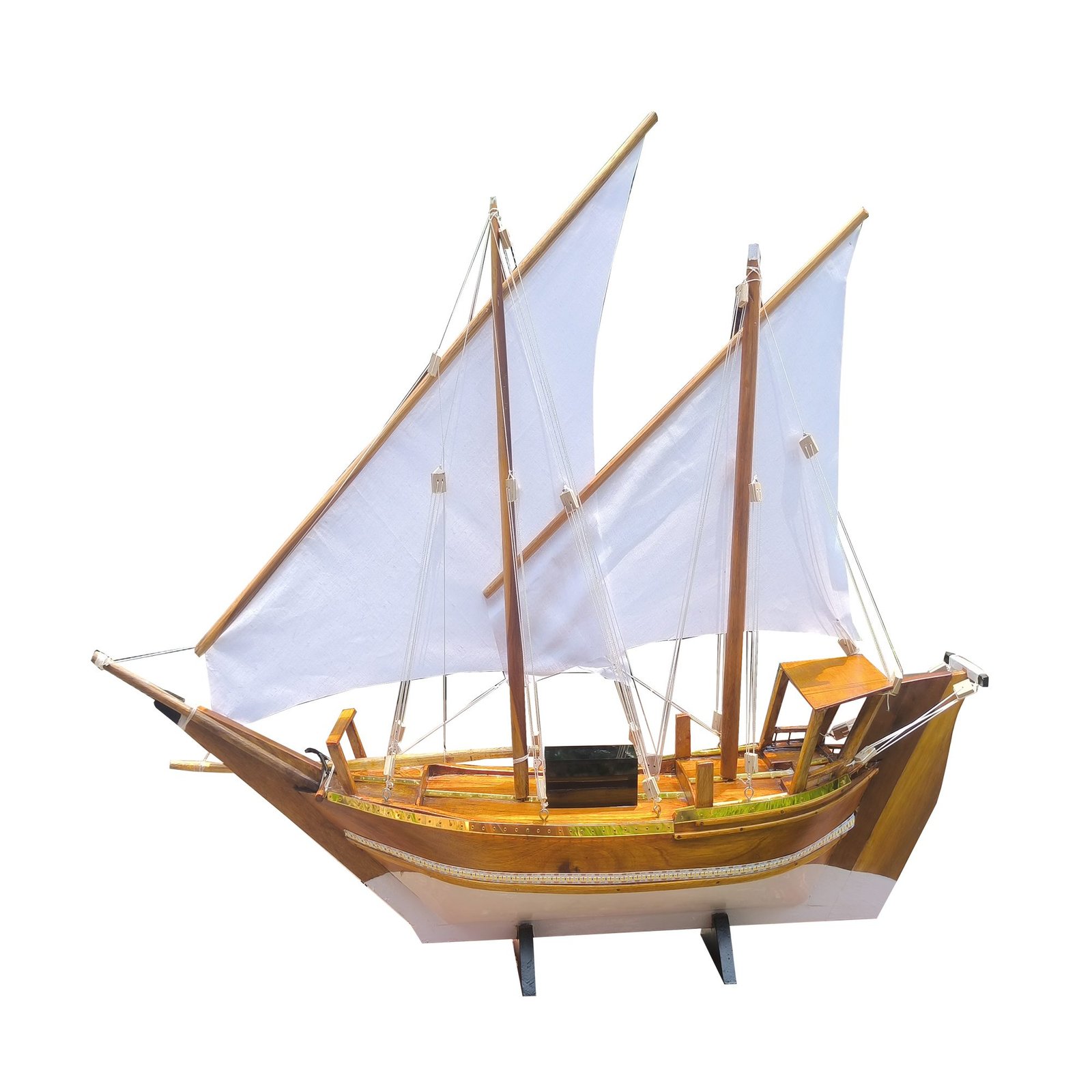 Wooden Uru Model Boat with LED Lights and Golden Boarder